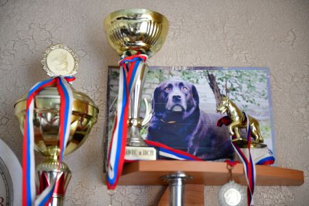 — Это награды за участие во Всероссийских соревнованиях. Приезжают владельцы собак-проводников и выполняют всевозможные задания: ориентирование, домашнее задание, трюковые номера. Хозяина тоже тестируют на знания. Когда мы ездили в первый раз, то взяли серебро. Подвело то, что инструктор подошёл к собаке незаметно и предложил лакомство. Она не отказалась, и это засчитали за ошибку, баллы снизили. Я и не знал, что так нельзя. Во дворе часто спрашивают, можно ли погладить собачку, угостить, раньше я не возражал. Но за год исправились, на следующие соревнования поехали уже подготовленные и завоевали золото!